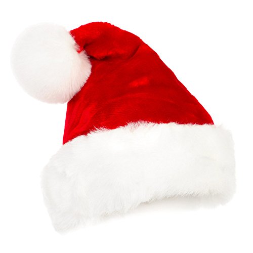 Santa Hat Red Velvet Christmas Hat for Adults with Big White Plush Ball SD02