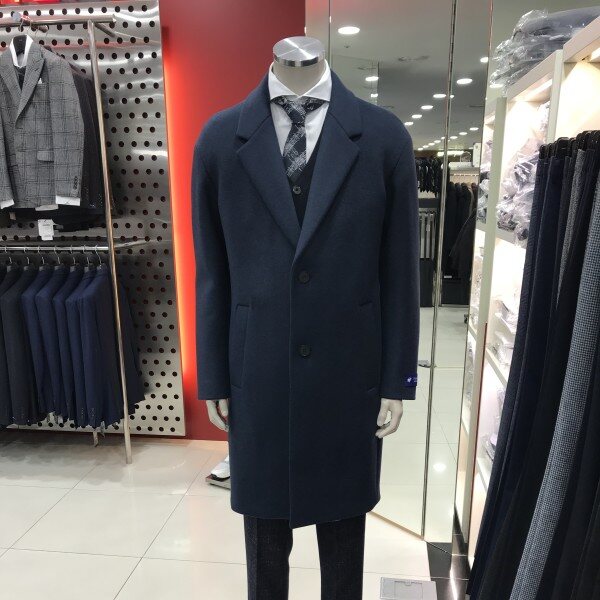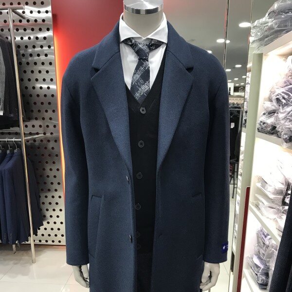고급스런 블루컬러의 드랍소매 디자인의 세미오버핏코트입니다