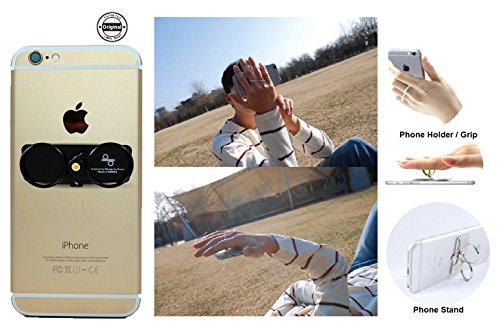 Keeep Phone Holder Stand Bar Unique Dual-Ring Serve As Cell Phone Grip and Stand to Keep in Touch - Black