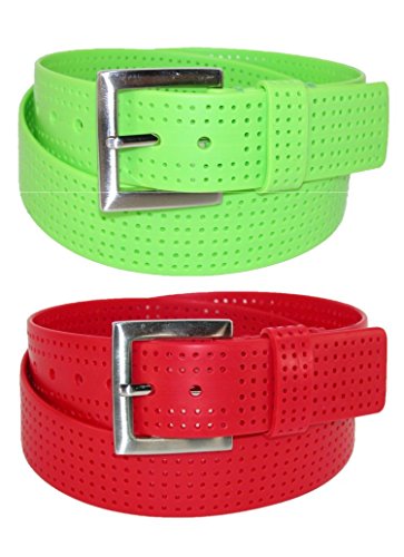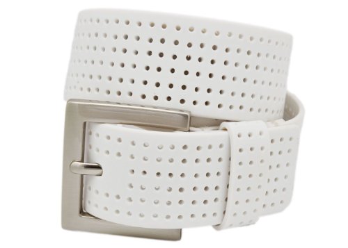 PGA TOUR Men's Perforated Fashion Color Silicone Belt, White, 34