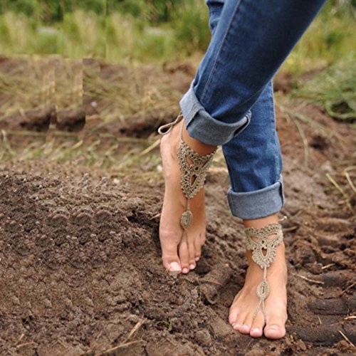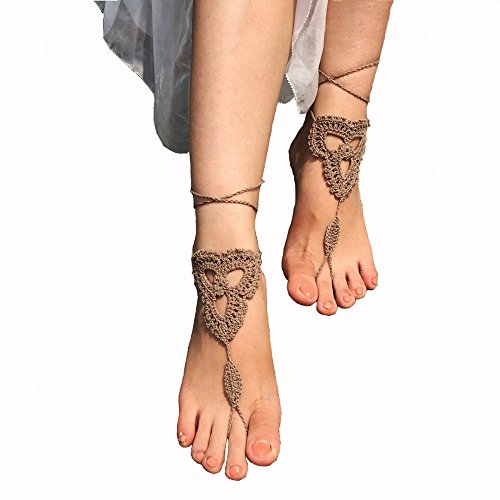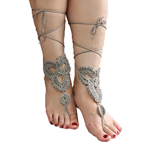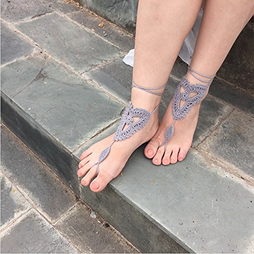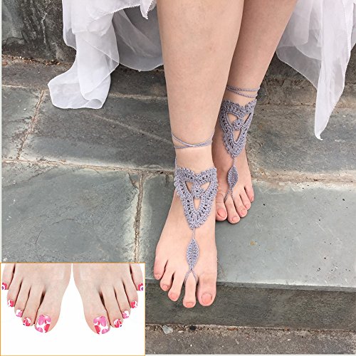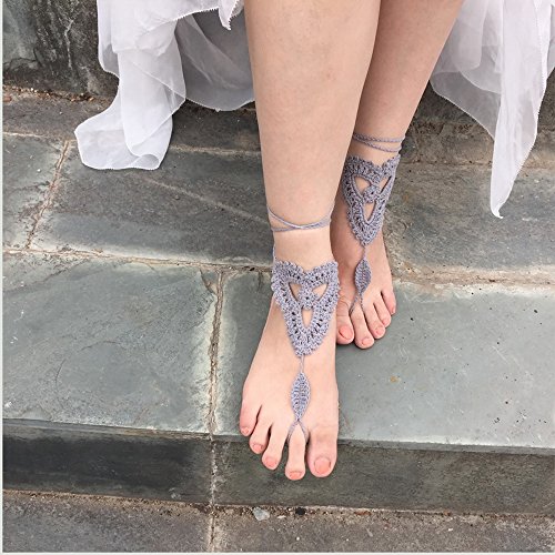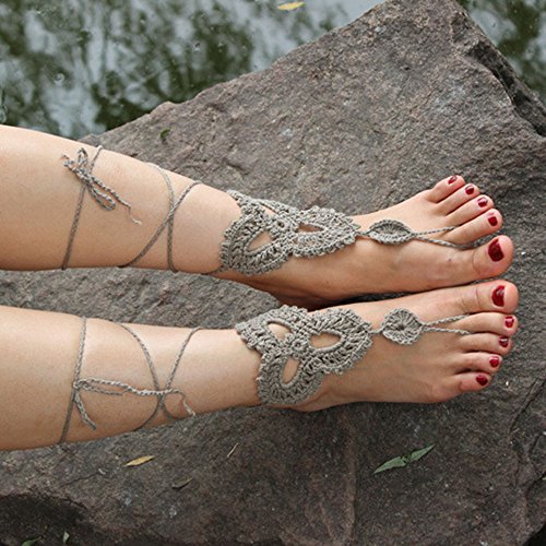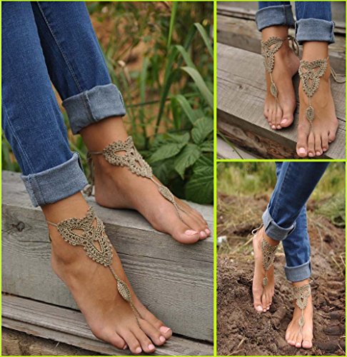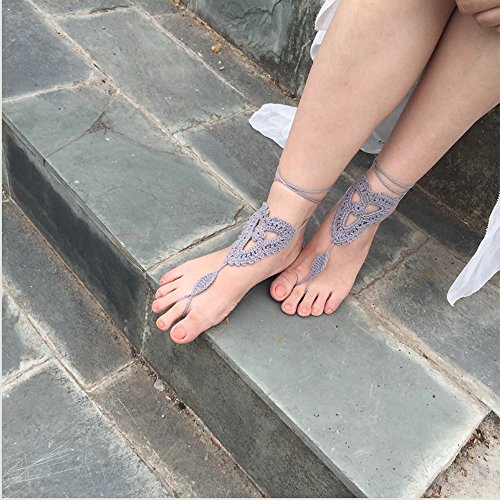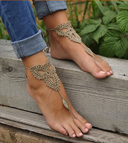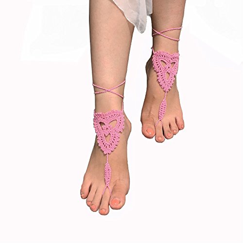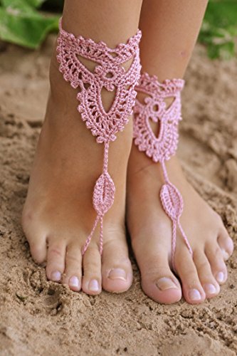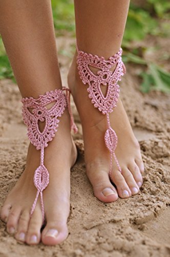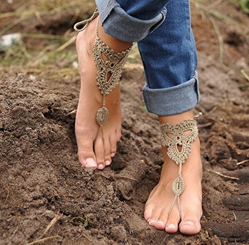 Product Description This beautiful crochet bare foot sandal jewelry is perfect for destination and beach weddings. Beautiful barefoot sandals are perfect to wear with belly dancing costumes. Gives stylish look. Available in medium size to fit 7-8 foot size. Care Instructions: Wash by hand in warm water and lay flat to dry. All barefoot sandals are sold in pairs. 100% cotton yarn, they can be worn barefoot or with shoes. The sandals sits comfortably on your feet and do not restrict the natural movement of your feet. 0
