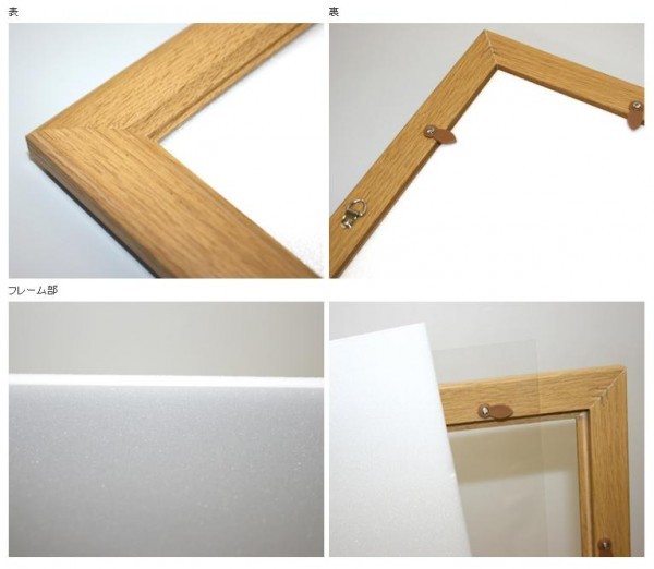 | 素材・材質 | フレーム:木製 透明板:PETシート(0.5mm厚) 裏板:発泡スチロールボード(5mm厚) |