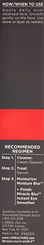 Introducing a miraculous anti-aging moisturizer with Opti-Blur technology that diffuses light on skin for a radiant soft-focus blurring effect while providing 24-hour hydration. L'Oreal Paris Revitalift Moisture Blur instantly erases the look of lines, wrinkles and pores. Skin instantly looks and feels smooth, leaving a velvet soft matte finish that lasts all day.Feature
