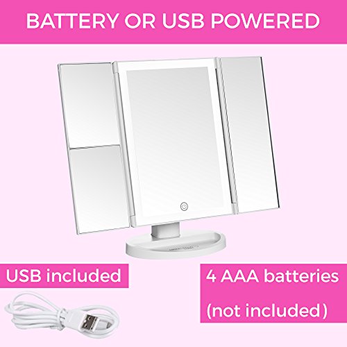 - PORTABILITY MADE EASY - Cordless, lightweight and AAA battery powered (not included) makes this LED vanity mirror perfect to carry with you to your lockers, dorms, friend's houses, theatre class, or any table you can turn into your makeup desk! Or plug in the included 1m USB cable and never run out of battery again!
