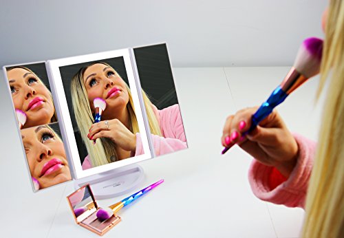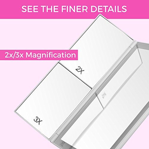 - MIRROR, MIRROR ON THE WALL - Find your perfect viewing angle using the Absolutely Lush Lighted Makeup Mirror's 180° swivel rotation, making it easier to check your makeup or hair from any view! See the finer details using the 2X/3X Magnification Left Side Mirror.