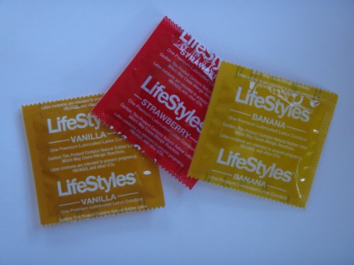 A tempting assortment of three luscious flavors and colors for extra fun and excitement! Very Strawberry, Sensuous Vanilla, Tropical Banana flavors to tantalize both of you! Plus the unique shapes and Ultra Sensitive thin style provide enhanced sensation. All are lubricated for a comfortable, natural feeling Reservoir tip for added comfort and safety Made of the highest quality latex Tested over three times to insure the highest quality and maximum reliability * Flavors are subject to availability of inventory. We can not guarantee which flavors will be shipped.Feature