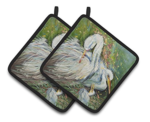 Caroline's Treasures White Egret In the Rain Pair of Pot Holders JMK1210PTHD, 7.5HX7.5W, Multicolor