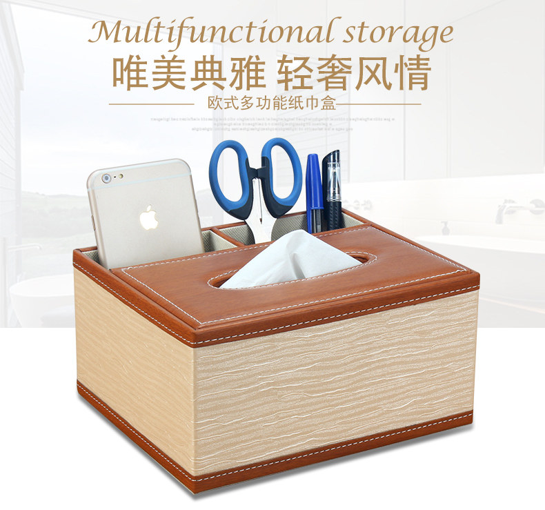 皮革简约多功能客厅纸巾盒 抽纸盒 桌面茶几遥控器收纳盒欧式创意