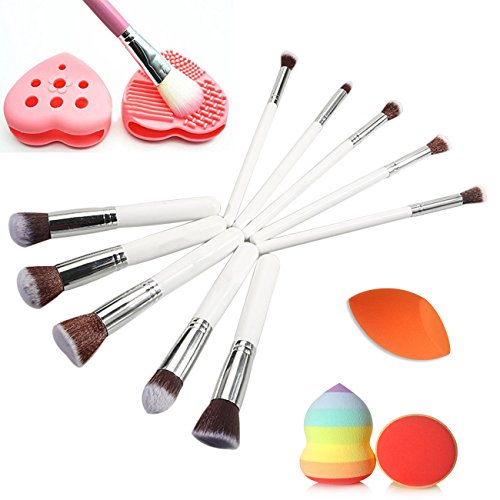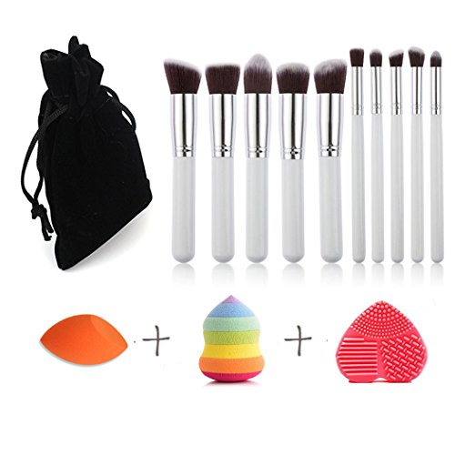 Ourhome520 Premium Makeup Brush Set Synthetic Kabuki Cosmetics Foundation Blending Blush Eyeliner Face Powder Brush Makeup Brushes Kit(10pcs+3pcs+1pcs+1pcs,)