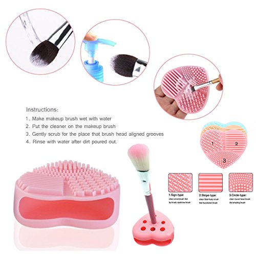 - ◆ MAKEUP BRUSH CLEANER: will help thoroughly clean through all the bristles and make cleaning your brushes.Made of high quality silicone,Smaller knobs on the top used for foaming and lathering. The grooves in the bottom of the egg are used to agitate the bristles.