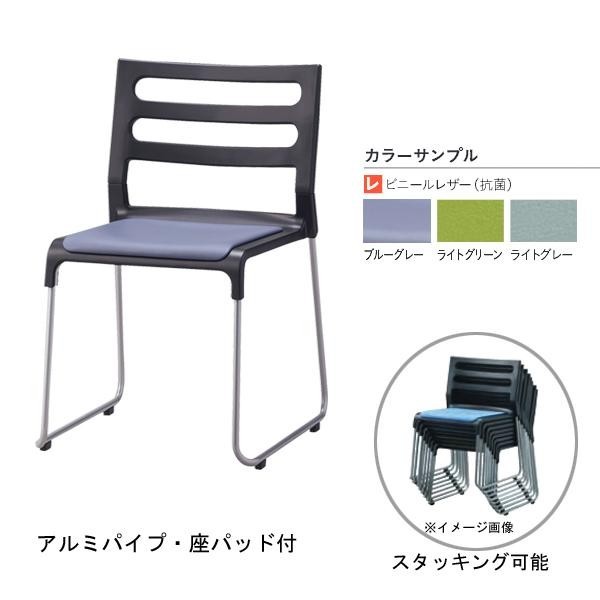 | 素材・材質 | フレーム:φ16.0アルミ丸パイプ、粉体塗装 背・座:ポリプロピレン樹脂成型品 座パッド:ポリプロピレン樹脂成型品、ウレタンフォーム 張地:ビニールレザー(抗菌) |