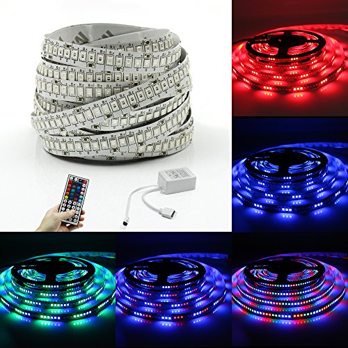 SZMINILED LED Ribbon, RGB DC12V 5 Meters SMD 2835 Non-Waterproof Light strip with 44 Keys Remote Controller for Home Decoration