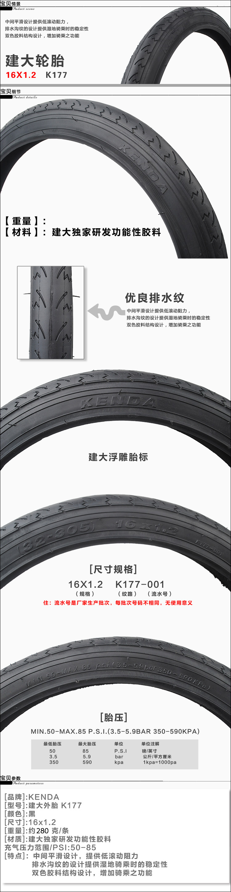 [type] Jianda tyre 16*1.5-K193 16*1.2-K177