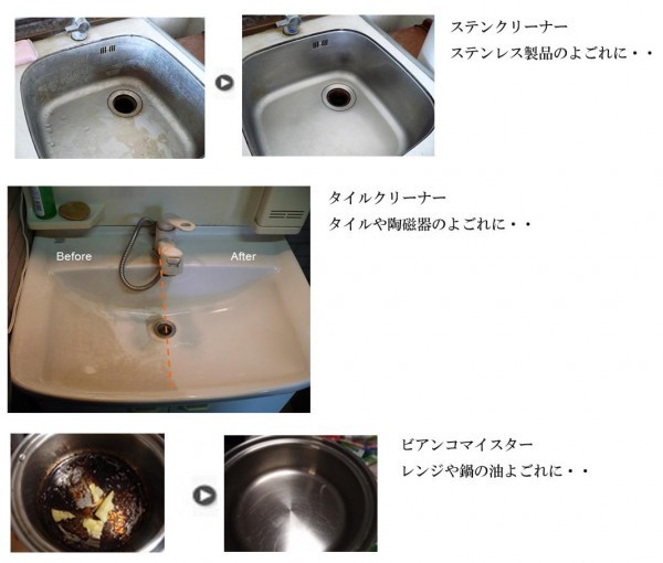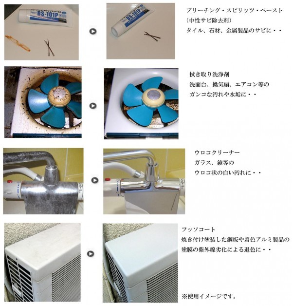 お家の様々なところに広がる汚れ・サビ・水垢など用途にあった専用クリーナーが全てセットになって登場です。新品同様によみがえらせましょう。 |