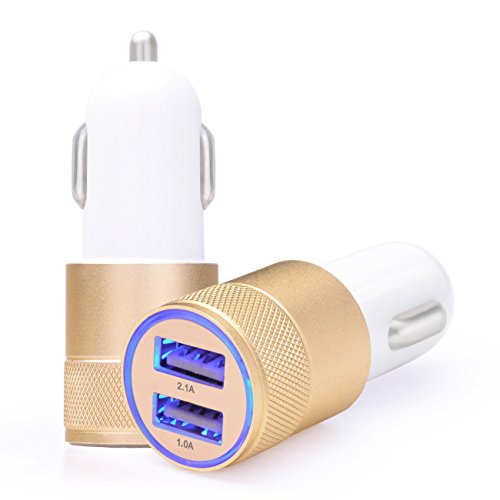 Universal Metal 12 Volt / 1 ~ 2 Amp Dual USB Port Car Charger for iPhone Samsung Smartphone(Gold)