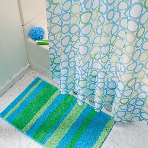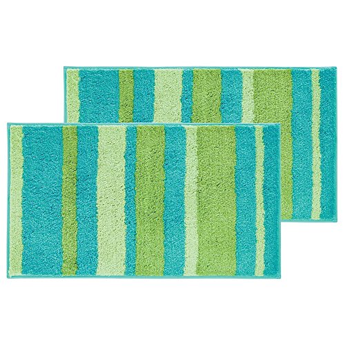InterDesign 18911M2 Stripz Non-Slip Microfiber Polyester Bathroom, Shower, Tub or Vanity Accent Rug - Blue/Green, Set of 2