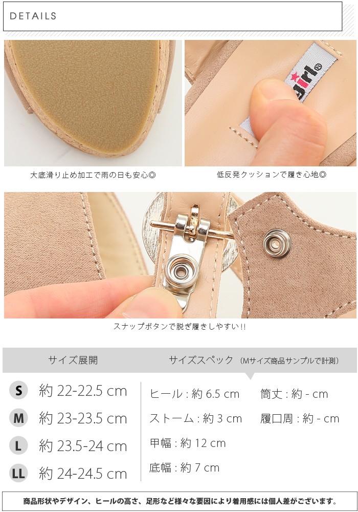 | カラー | 01. ブラックスエード 02. ベージュスエード 03. カーキスエード |