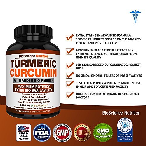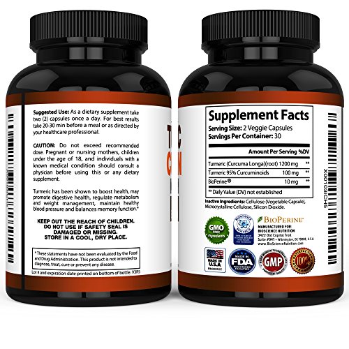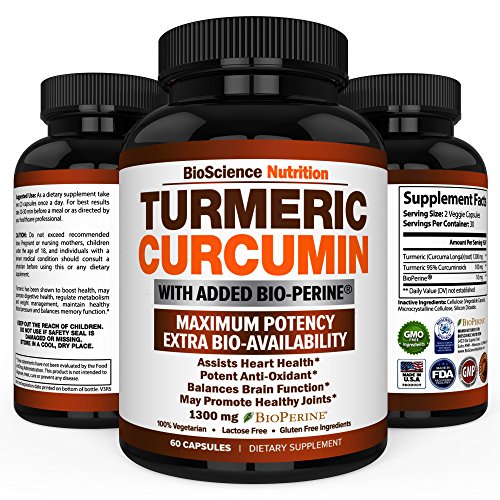 Turmeric Curcumin with BioPerine 1300MG with Black Pepper - Joint Support Nutritional Supplements – 100% Herbal Tumeric Root Capsules –...