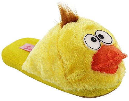 -. Binding : Apparel -. Brand : Sweet 10 -. Department : unisex-adult -. Feature : Ladies slip-on design makes for easy slip on and off wear / Fun animal characters / Plush material / The bottoms have dotted skid-resistant soles meant for indoor use only. / Women size S(5), M(6/7), L(8/9), XL(10) -. Model : Animal slippers -. ProductGroup : Shoes -. ProductTypeName : SHOES -. Title : Whimiscal Ladies Animal Character Slip On Fuzzy Plush Slippers