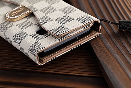 HeiL® S7edge 3 Fold *Fast US Deliver Guarantee Fulfilled by Amazon* New Elegant Luxury High Quality PU Leather Checker Pattern Wallet Style Flip Cover Case For Samsung Galaxy S7 EDGE ONLY (White)