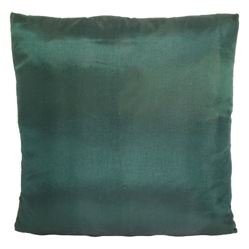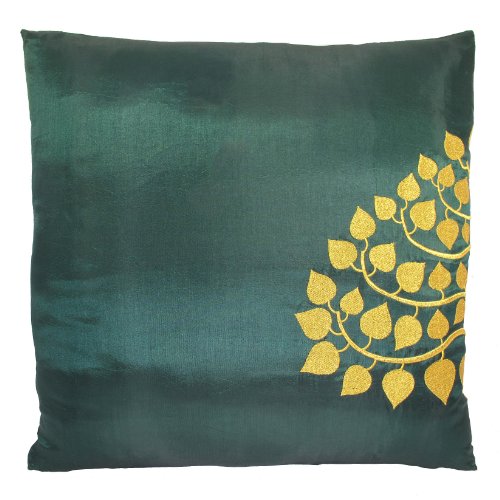 Contemporary Thai Silk Throw Pillow Cover (Cushion Cover), Gold Embroidered Bodhi Tree Leaves Design, 16" x 16", Green