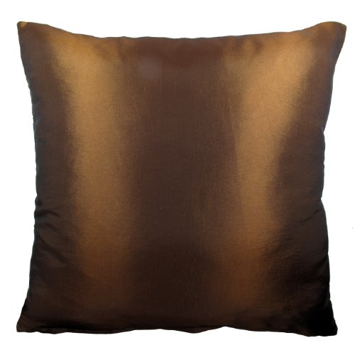 Contemporary Thai Silk Throw Pillow Cover (Cushion Cover), Gold Embroidered Bodhi Tree Leaves Design, 16" x 16", Medium Brown