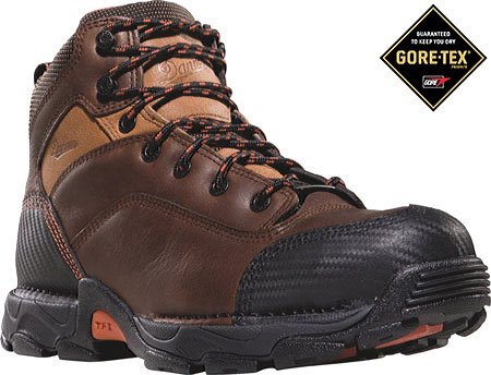 Studio : Danner Publisher : Danner Binding : Apparel Product Description Danner 5" Corvallis GTX Brown Boots are hand - made, tough S. O. B.s! Footwear rough and rugged on the outside, but soft and comfortable inside! Danner bootmakers built the Corvallis by hand. It's the only way to ensure heavy-duty components like the safety toe, leather upper and waterproof / breathable GORE-TEX liner come together in a way that ensures uncompromised quality for the craftsmen who wear them. Check these out: Rich, full-grain leather uppers for comfort and superior boot durability; Lightweight, stable Terra Force X platform to enhance side support and performance; 90 heel and slip-resistant Danner Landscaper outsole; Triple-stitched for endurance; Abrasion-resistant toe and heel; Fastened with wider speed laces for a secure, tight fit; Non-metallic toe is lighter than steel, and meets ASTM F2413-05 M I / 75 C / 75 standards; Each Boot weighs approx. 52 oz.; State Size. Reliable, for your hard-working days! Order Now! Men's Danner Corvallis GTX Brown Non-Metallic Toe Boots 0