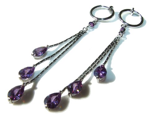 -. Title : イヤリング (装着簡単 ピアスに見えます) レディース アメジストキュービックジルコニア