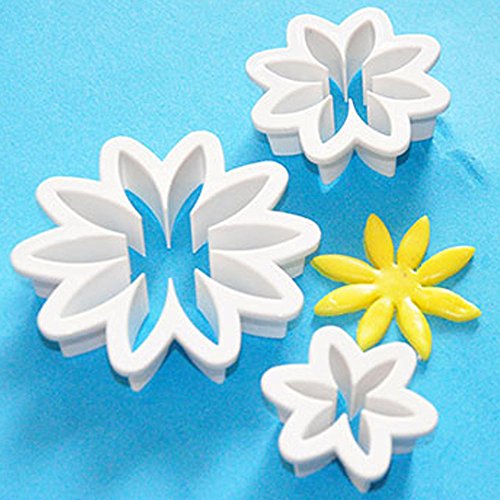 Ruiji Fondant Decorating Tools 3pc Flower Cake Plunger Cutters Cupcake Toppers White