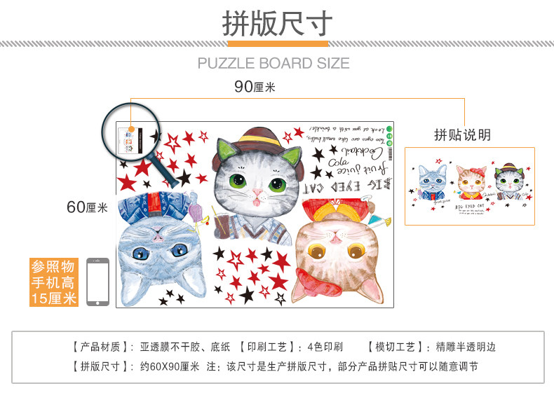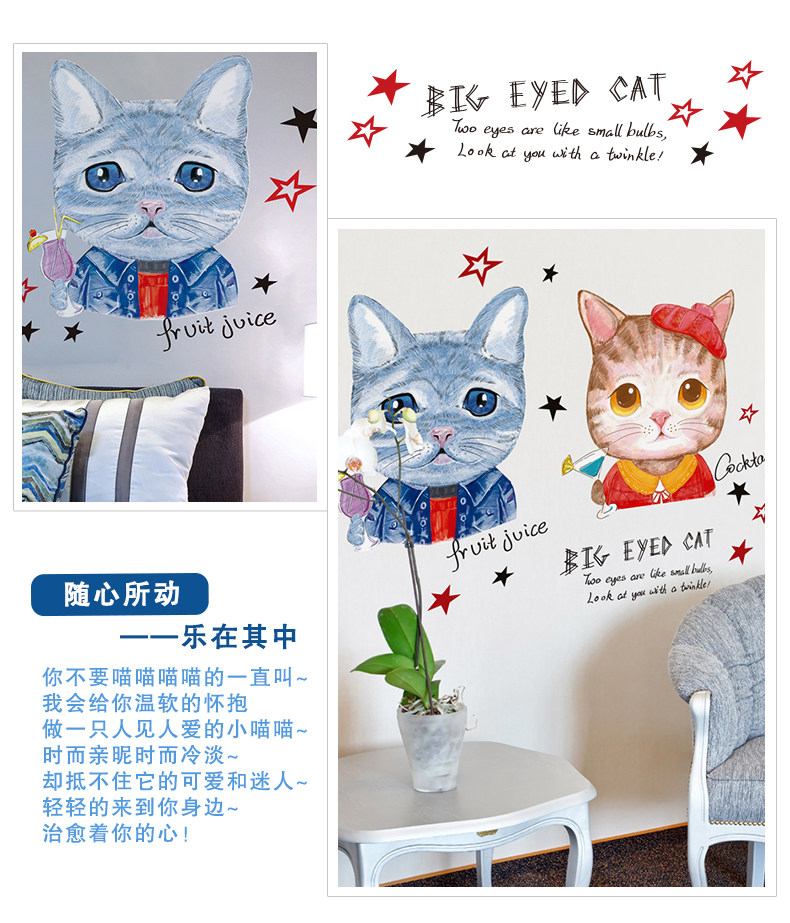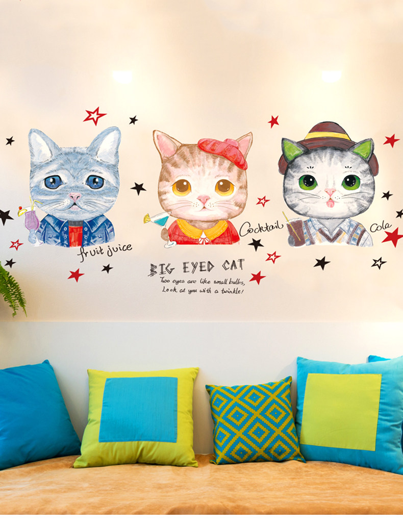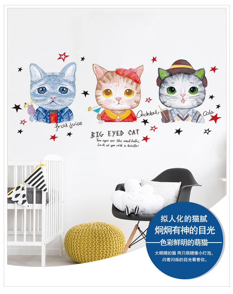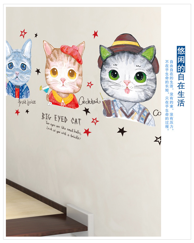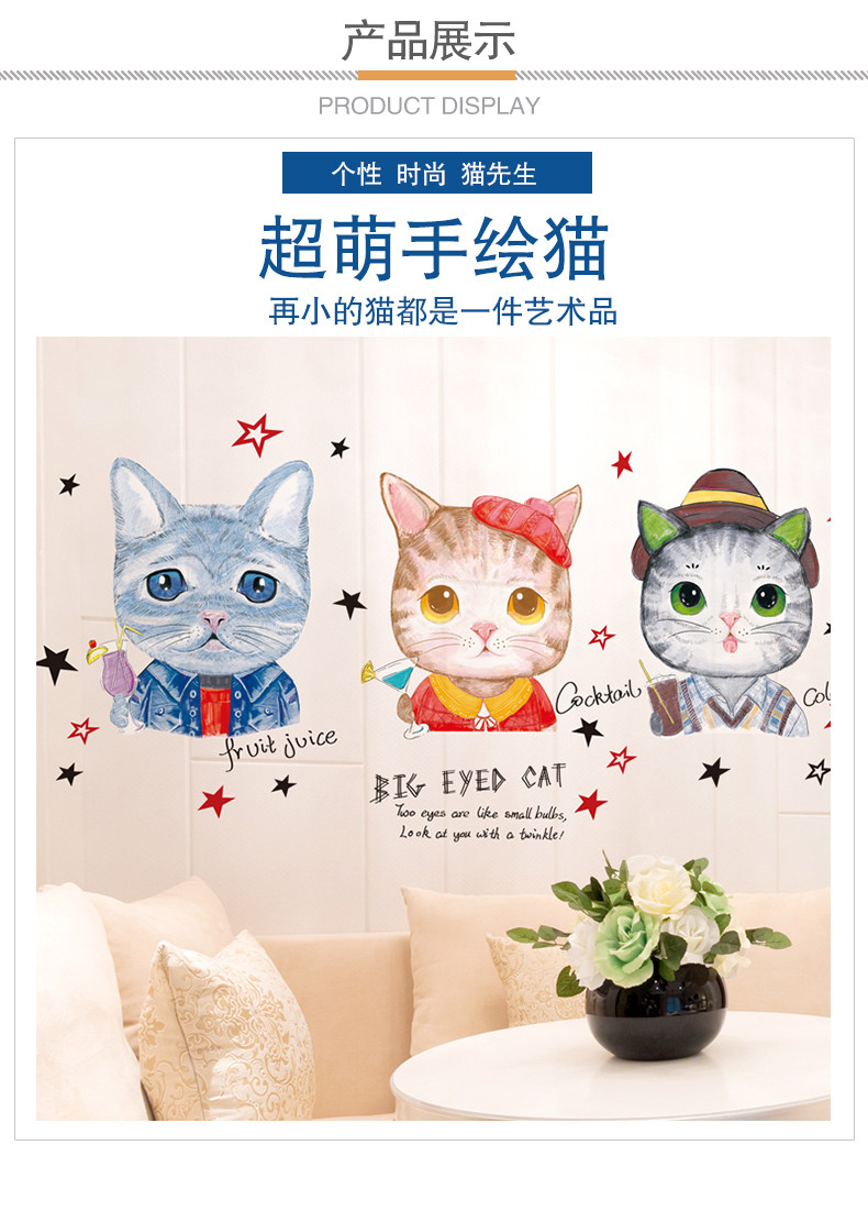 墙纸自粘卧室温馨壁纸墙贴画海报纸彩色猫咪宿舍大学生超萌手绘猫