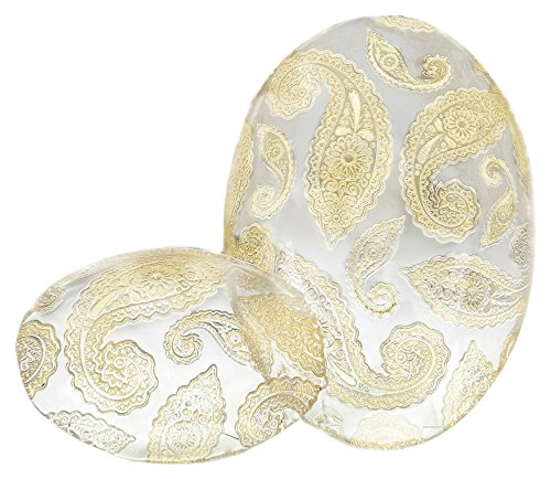 - This beautiful glass bowl is hand decorated with a gold paisley pattern on a clear background