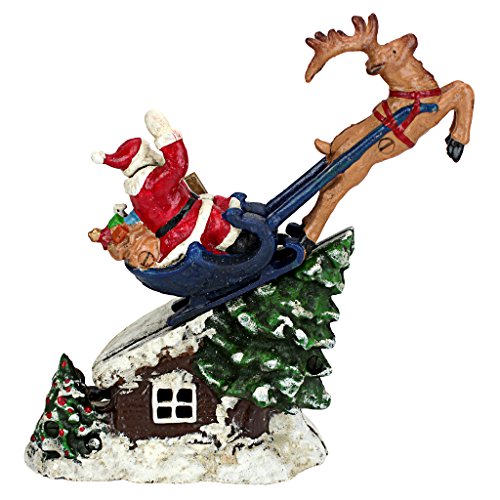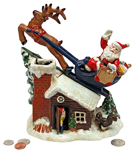 Christmas Decorations - Santa's Christmas Sleigh Ride Collector Die Cast Iron Mechanical Coin Bank - Savings Bank - Piggy Bank
