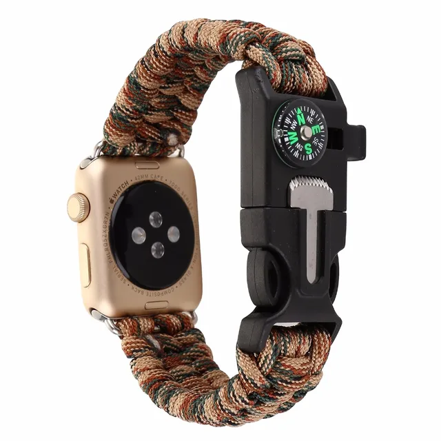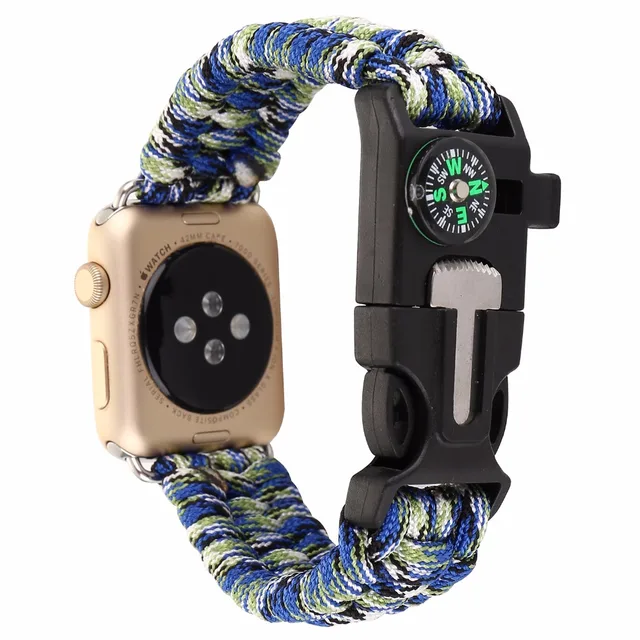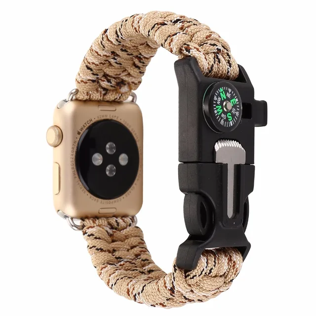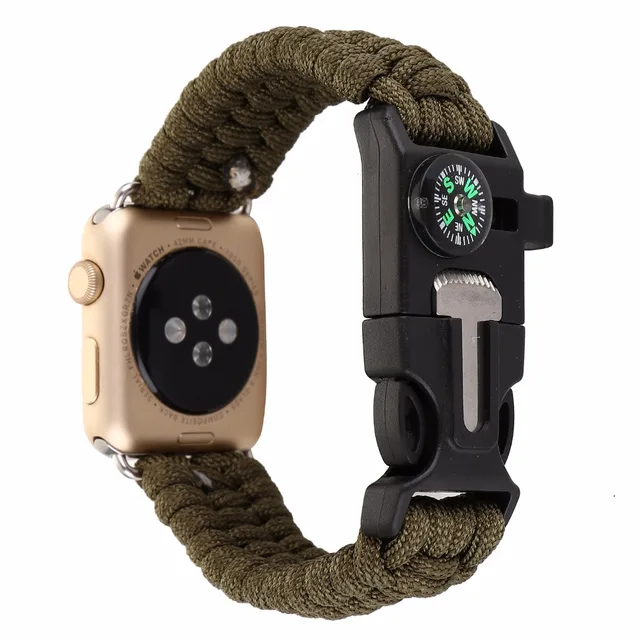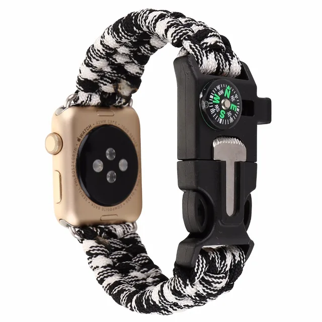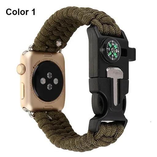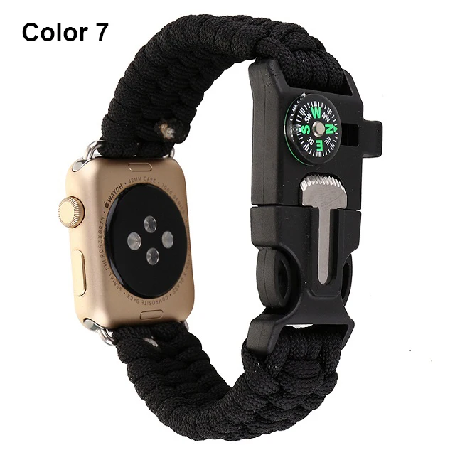 상품 내용 남성 스포츠 짠 나일론 생존 로프 시계 밴드 애플 시계 iwatch 38/42 미리메터 나침반 휘파람 및 Firestones I159.