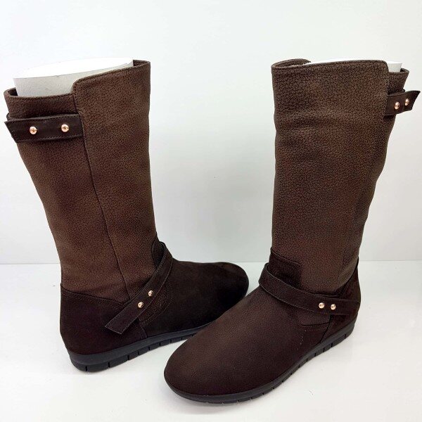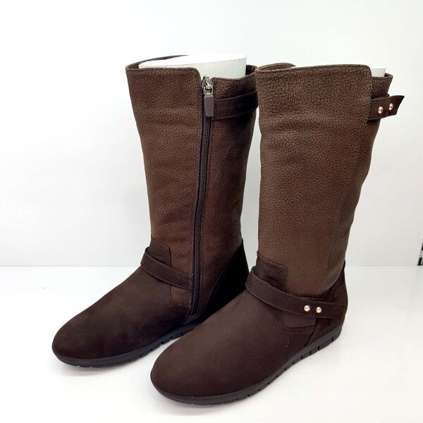 ◆ POINT : 금속 포인트 장식이 데코된 몰드 단화 하프부츠 전체 퍼와 기모내피가 적용되어 보온성이 우수한 제품. 부츠용 MOLD창을 사용하여 착화감이 편안함.