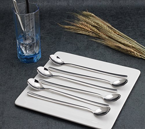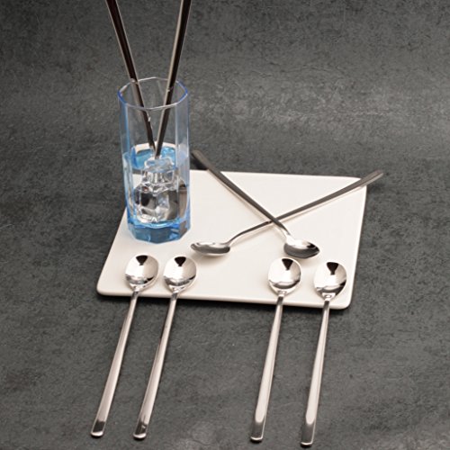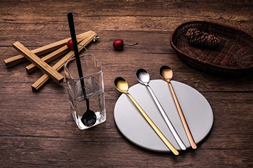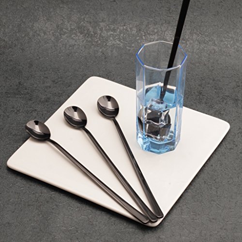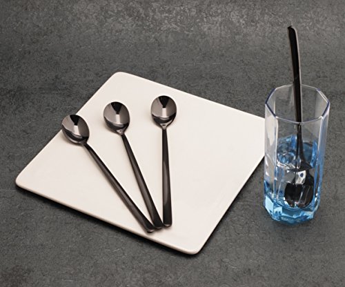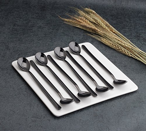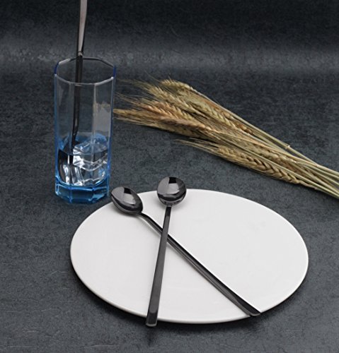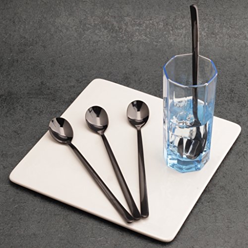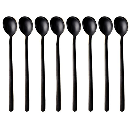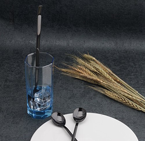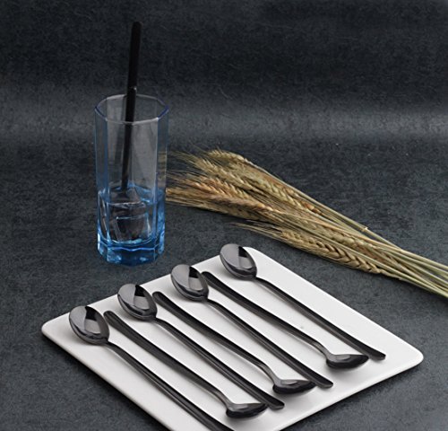 8x 7.5-Inch Long Handle Spoon 18/10 Stainless Steel Ice Cream Cocktail Teaspoons Coffee Soup Tea Spoons Color Black