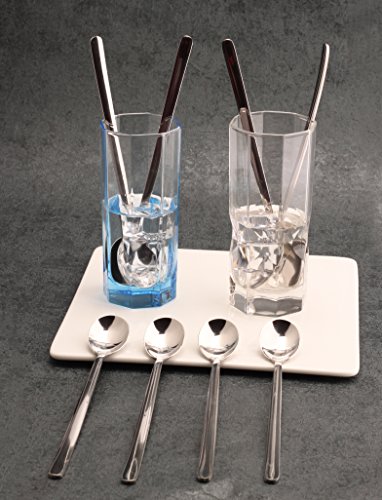8x 9-Inch Long Handle Spoon 18/10 Stainless Steel Ice Cream Cocktail Teaspoons Coffee Soup Tea Spoons Color Black