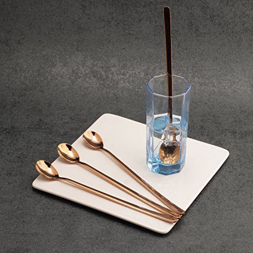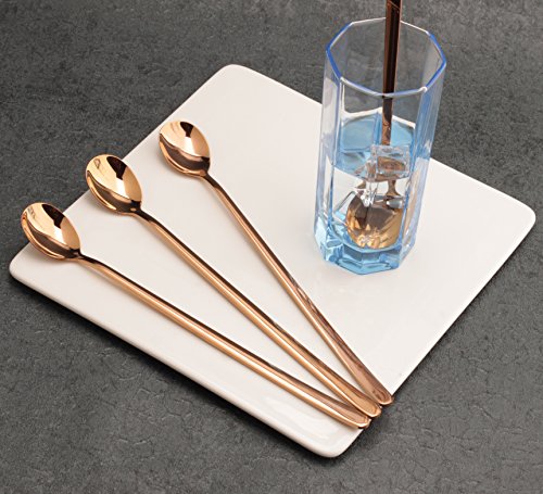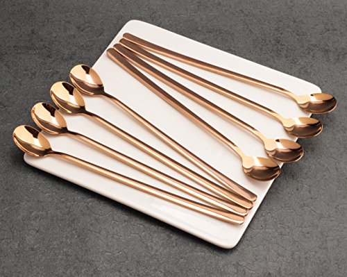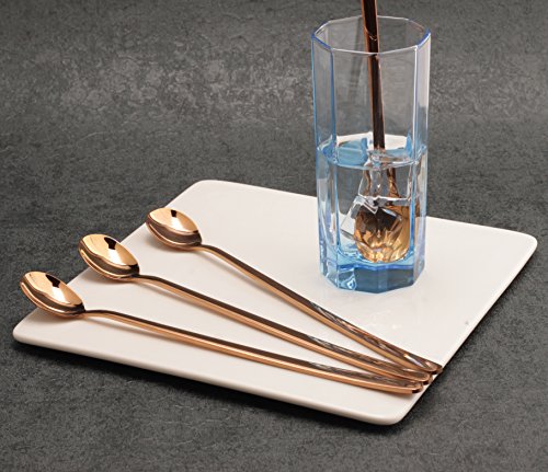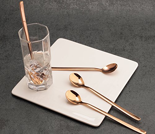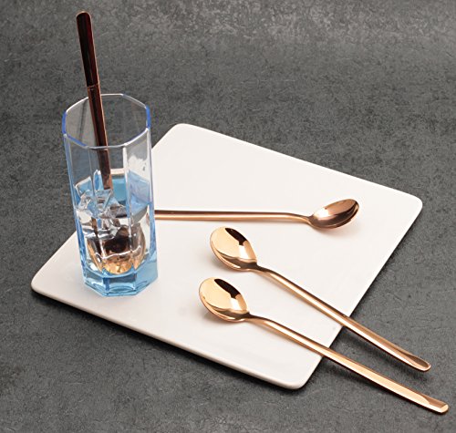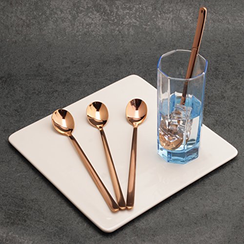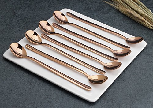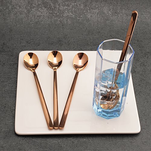 8x 9-Inch Long Handle Spoon 18/10 Stainless Steel Ice Cream Cocktail Teaspoons Coffee Soup Tea Spoons Color Rose Gold