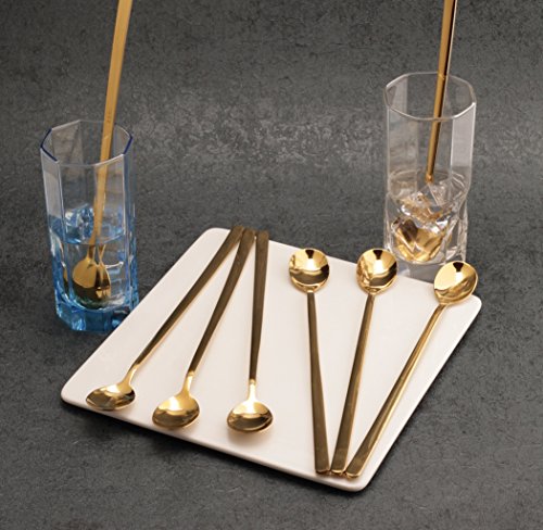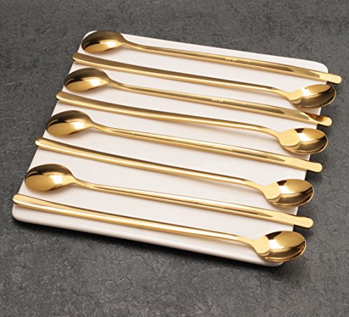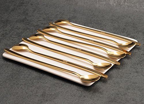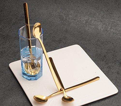 8x 9-Inch Long Handle Spoon 18/10 Stainless Steel Ice Cream Cocktail Teaspoons Coffee Soup Tea Spoons Color Gold