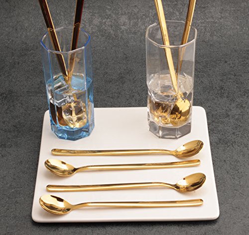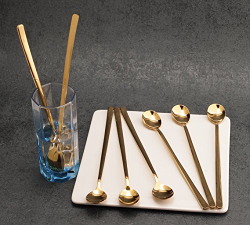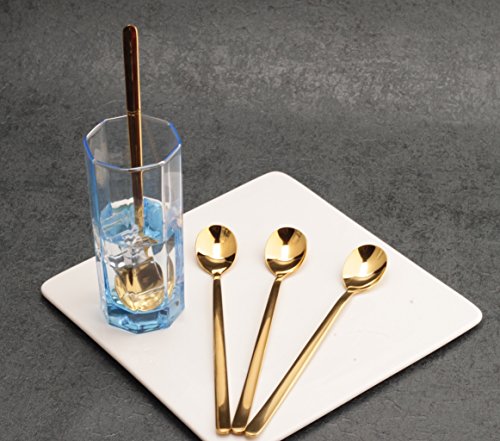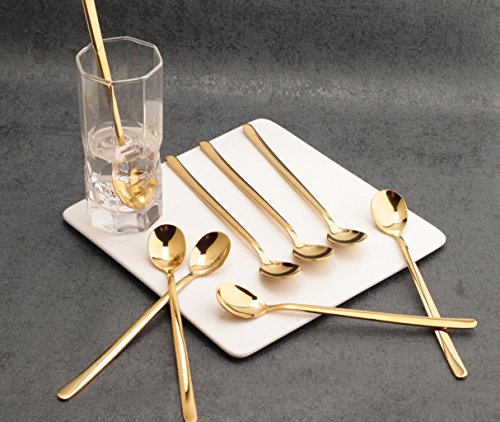 8x 7.5-Inch Long Handle Spoon 18/10 Stainless Steel Ice Cream Cocktail Teaspoons Coffee Soup Tea Spoons Color Gold