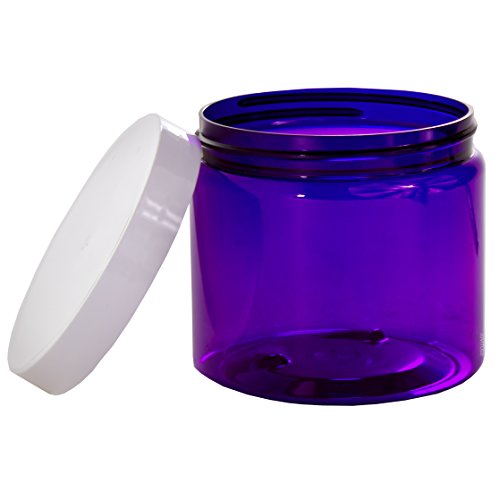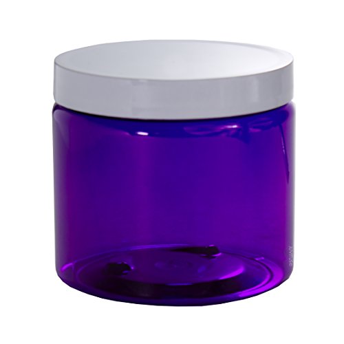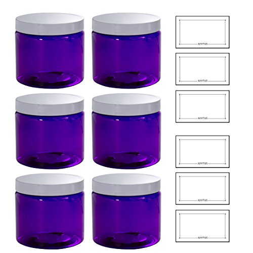 Purple 16 oz PET Plastic (BPA Free) Large Refillable Jar with Smooth White Lids- (6 pack) + Labels