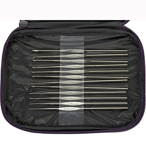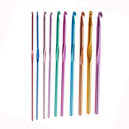 - [FULL CROCHET HOOKS SET]: This 22 piece set of crochet hooks includes: 10 stainless steel mutli-colored crochet hooks in sizes 2mm, 2.5mm, 3.0mm, 3.5mm, 4.0mm, 4.5mm, 5.0mm, 5.5mm, 6.0mm and 6.5mm with 12 stainless steel silver colored crochet hooks: 0.6mm, 0.75mm, 0.85mm, 0.9mm, 1.0mm, 1.10mm, 1.25mm, 1.40mm, 1.5mm, 1.6mm., 1.75mm and 1.90mm