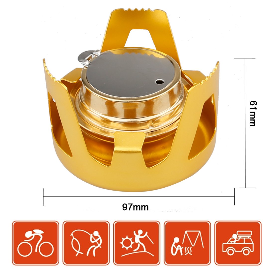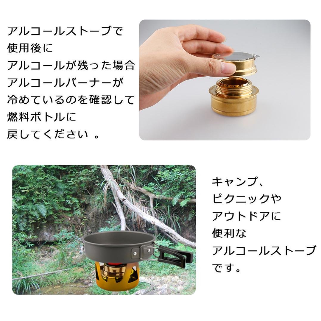 Alcohol stove comes with fire extinguishing lid, rubber sealed screw cap prevents alcohol leak, stent is equipped with wind protection.