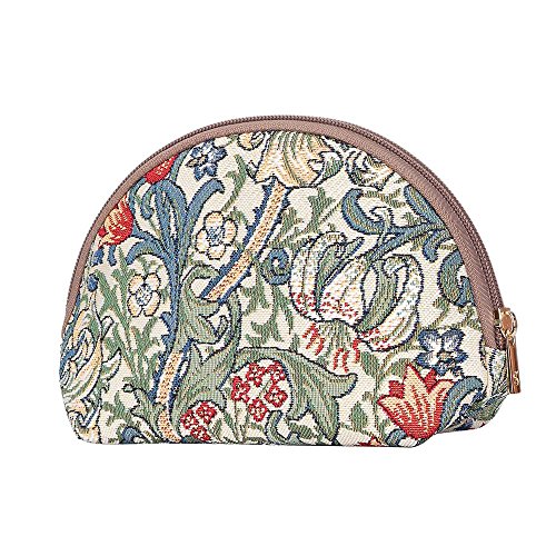 Signare Tapestry Makeup Bag Travel Cosmetic Bag Brush Bag for Women Girls by Designer William Morris Golden Lily (COSM -GLILY)