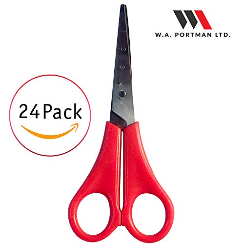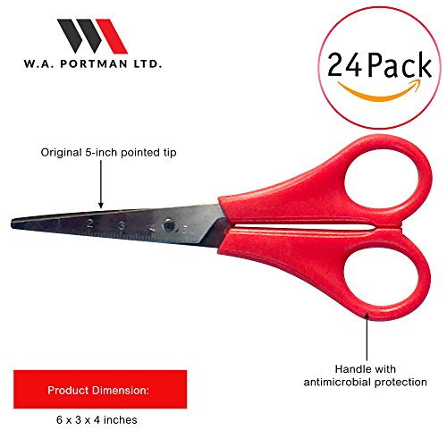 Kids Pointed Tip School Scissors - 24 Pack of Children’s Scissors with 5 Inch Stainless Steel Blades & Soft Handles for Right Handed & Left Handed Perfect for Any Art and Craft Project