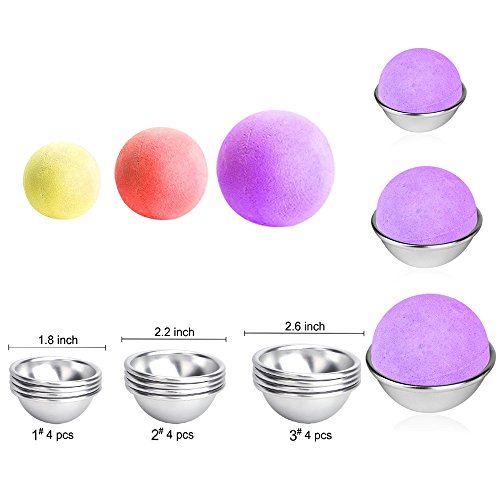 - VARIETY OF SIZES: Our Metal Bath Bomb Mold Set include 3 mold sizes (12Pcs) - 1.8"/4.6cm, 2.2"/5.6cm, 2.6"/6.6cm, give you more options.,It also can be used for various craft, like hand made soaps, oils bottles, DIY candles.