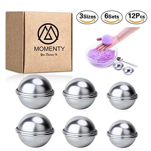 UPGRADE DIY Metal Bath Bombs Molds Kits and Supplies, Homemade Round Sphere Shapes Fizzy Bombs, for Crafting Your Own Fizzles, Large Medium Small 3 Sizes 6 Sets 12Pcs, by MOMENTY