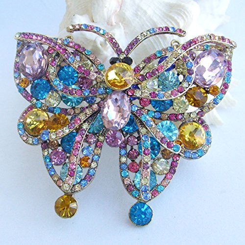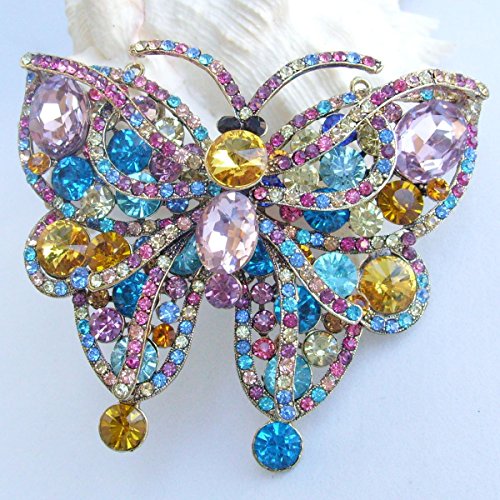 -. Title : Sindary Gorgeous 3.74" Animal Butterfly Brooch Pin Pendant Gold-Tone Multicolor Rhinestone Crystal BZ4921