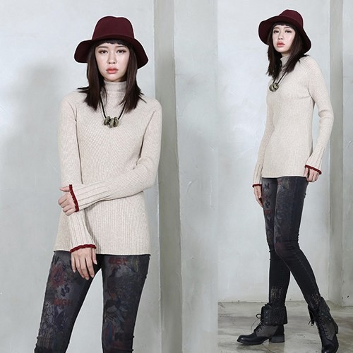 商品名:ニット レディース Tシャツ ウール ハイネック 無地 長袖 秋 2017 モード系 個性的 40代 ファッション