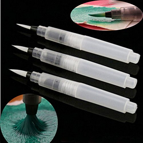 -. Feature : 3Size Water Soft Brush Pen Paint For Watercolor Reusable Beginners Calligraphy / Material:Plastic + Nylon Hair Color:White / Size:Large/Middle/Small / Total Length:12cm Approx / Package: 3 size pens