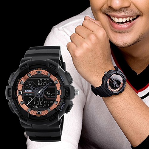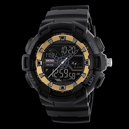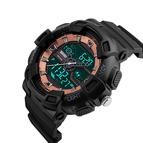 -. Title : Rockyu ブランド 腕時計 レディース メンズ スポーツ ウォッチ 3つタイム 50M 防水 耐久 世界 LED 時計 アナデジ